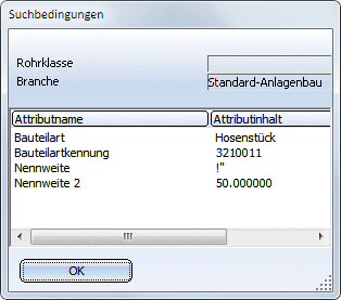 Die Nennweite des Bauteilanschlusses und die Nennweite der Rohrleitung bzw. des Leitkantenzuges werden automatisch als Suchkriterien für das Reduzierstück eingesetzt. Das Reduzierstück wird automatisch in der richtigen Richtung eingebaut.