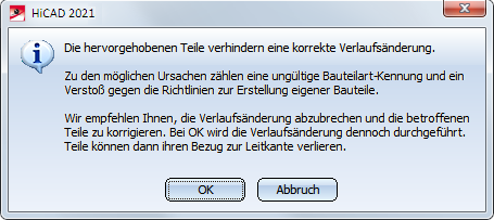 Durch einen Kick auf OK lässt sich die Verlaufsänderung dennoch durchführen. Wir empfehlen jedoch, die Verlaufsänderung abzubrechen und die markierten Teile zu korrigieren.