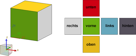 Ein Beispiel: Wir betrachten den abgebildeten Quader, dessen Seiten unterschiedliche Farben haben. Diesen Quader kopieren wir in das HiCAD Clipboard.
