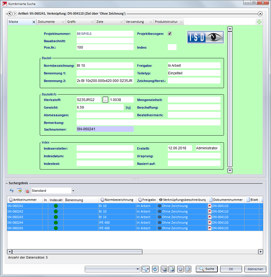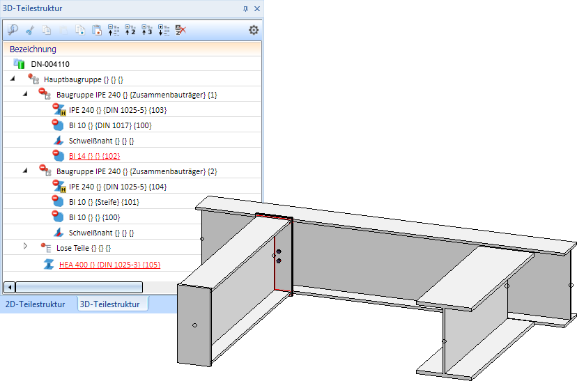 (Wir verwenden hier die ISD-seitigen Voreinstellungen für den Stahlbau.) - Speichern der Konstruktion mit der Funktion Zeichnungsverwaltung > Konstruktion > Spei...