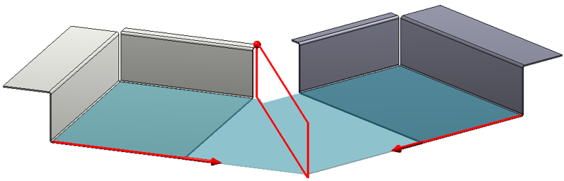 Dadurch wird der erste Schnittpunkt der Gehrung automatisch gesetzt. Er liegt in der theoretischen Verlängerung der Innenkanten der Laschen. Mit der rechten Maustaste schalten Sie auf die theoretische Verlängerung der Außenkanten um.