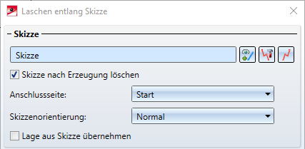 Klicken Sie Skizze nach Erzeugung löschen an, wenn die Skizze, nach der Erstellung der Laschen, aus der Konstruktion und aus dem ICN gelöscht werden soll. |