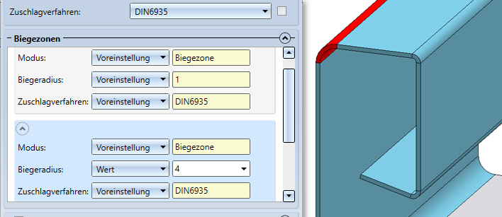 Das Zuschlagverfahren kann je nach Bearbeitungsart für jede Biegezone gewählt werden.