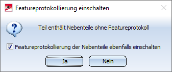 Enthält das Teil eines oder mehrere Nebenteile, die ebenfalls kein Featureprotokoll enthalten, erscheint eine Abfrage, welche Ihnen anbietet, die Featureprotokolle aller Nebenteile ebenfalls einzuschalten.