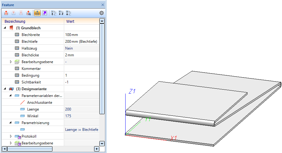 Beispiel einer Designvariante bei der Blechbearbeitung mit parametrisierter Teilevariablen