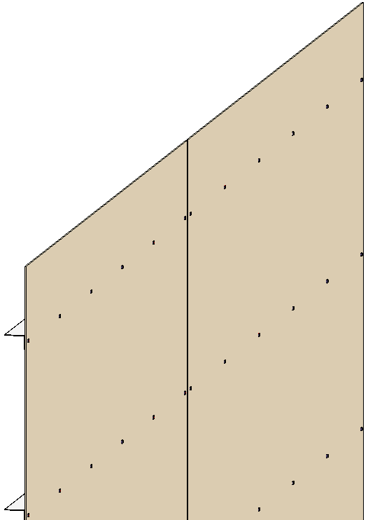 Die Unterkonstruktion wird geändert, sodass die Profile nun geringere Abstände zueinander aufweisen. Die Nieten und Löcher in der Elementverlegung, die über das Feature Verbindung erzeugt wurden, bleiben von dieser Änderung unberührt und befinden sich weiter an der alten, nun falschen Position: