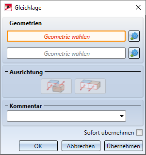 Identifizieren Sie als Geometrien beide Geometrieelemente, die in Gleichlage liegen sollen.