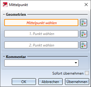 Mit dieser Funktion können Sie einen Punkt zwischen 2 Geometrieelementen als Mittelpunkt festlegen.