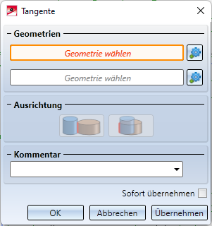 Diese Ausrichtung können Sie alternativ auch über das Feld Ausrichtung im Dialogfenster Tangente ändern oder über die Funktion Ausrichtung umkehren im Kontextmenü der Bedingung.