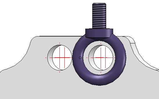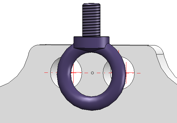 Der Torus der Ringschraube soll Tangential an der Platte anliegen. Wird bei der Erzeugung der Tangentialitätsbedingung auf den in der oben gezeigten Ansicht vorne liegenden Teil des Schraubenringes geklickt, wird dieser tangential zur Platte gesetzt. Dadurch wird die Schraube hinter der Platte platziert: