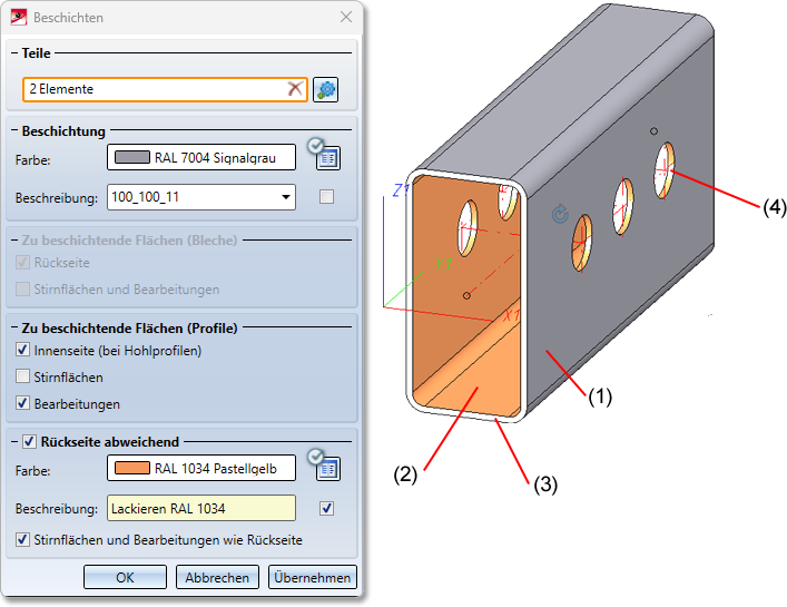Neben Kant- und Stahlblechen sowie allgemeinen 3D-Teilen lassen sich mit der Funktion Beschichtung