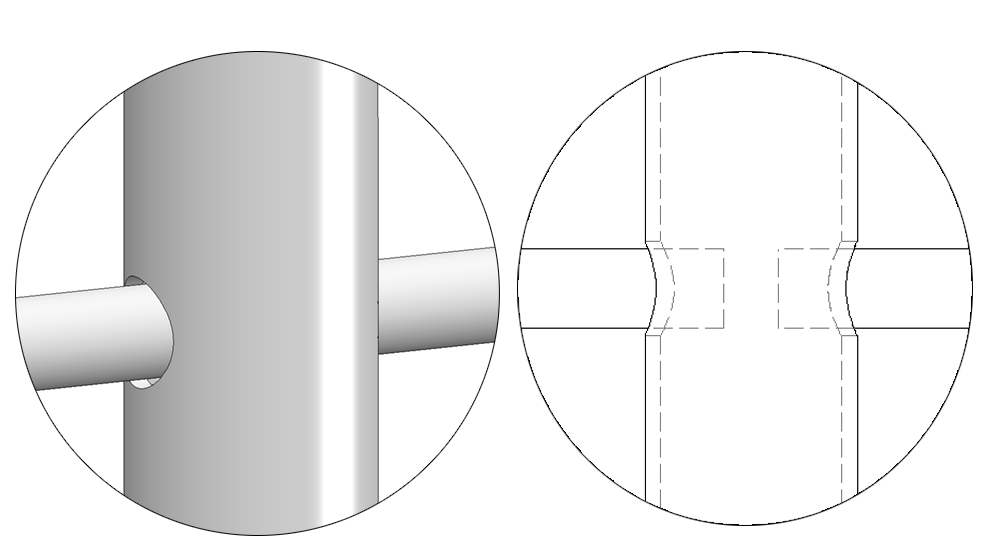 - Zwei Bohrungen in Querrichtung