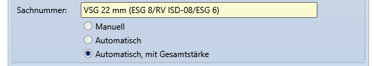 Auch hier wird die Sachnummer wie bei der Option Automatisch anhand des Schichtaufbaus generiert, aber hier wird zusätzlich die Gesamtstärke mit ausgegeben.