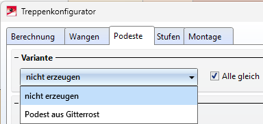 - Treppen können jetzt auch ohne Podeste erzeugt werden. Dazu steht auf der Registerkarte Podeste die neue Variante Nicht erzeugen zur Verfügung.