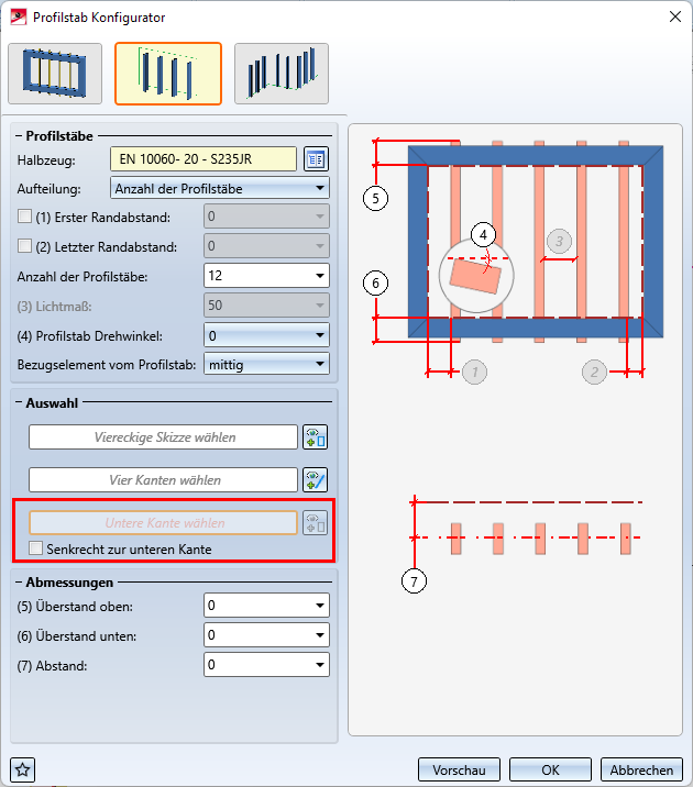 Mit dem Profilstab Konfigurator lässt sich jetzt auch der Bereich zwischen den Kanten einer "freien" Skizze mit Profilstäben auffüllen. Bisher waren hier nur viereckige Skizzen zugelassen.