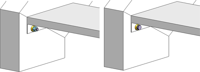 Links: Verschraubung außen, Rechts: Verschraubung innen