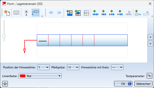 links im Fenster lässt sich die Toleranz zoomen. Darüber hinaus können Sie bei mehrzeiligen Form-/Lagesymbolen mit