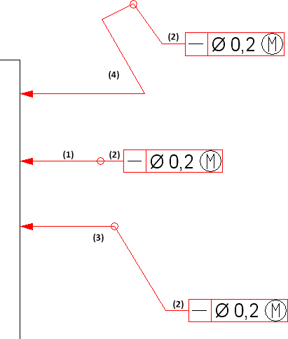 - Form-/Lagetoleranzen lassen sich an Maßhilfslinien setzen. Wird das Maß verschoben, dann wird auch die Toleranz verschoben.