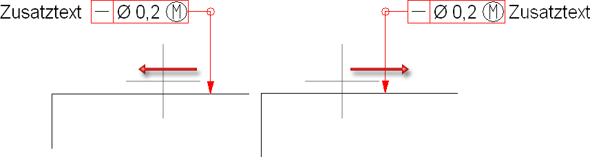- Der Zusatztext einer Zeile in Form-/Lagetoleranzen wechselt die Seite, wenn die Seite (rechts/links) der Form-/Lagetoleranz wechselt.