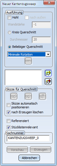 Haben Sie unter Ausführung die Option Beliebiger Querschnitt gewählt, dann müssen Sie nun die entsprechende Skizze identifizieren oder neu zeichnen.