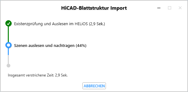 Für die Migration der Bestandsdaten wird beim Erststart von HiCAD mit HELiOS nach dem Update automatisiert ein Tool ausgeführt.