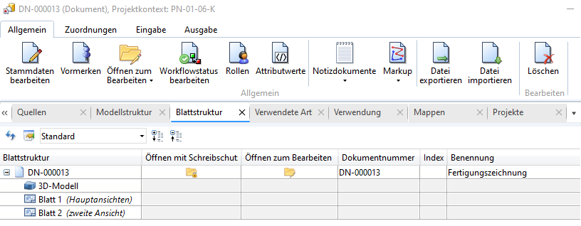Modell-/ Dokumentstruktur und Blattstruktur