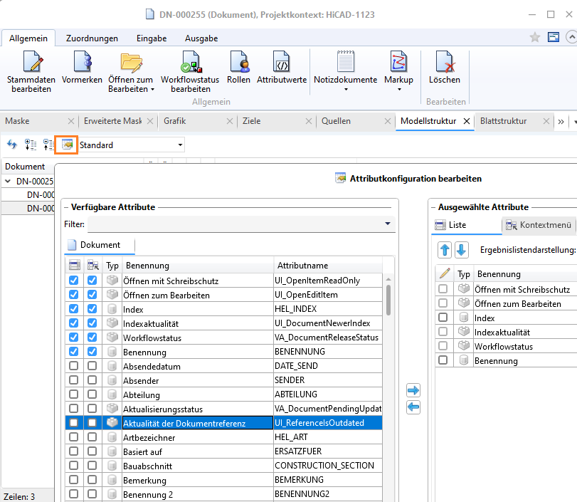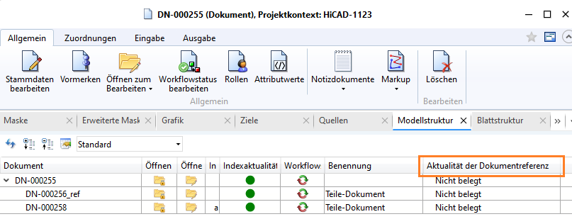 Mit diesem können Sie der Modellstruktur-Ergebnisliste die Spalte Aktualität der Dokumentreferenz hinzufügen.