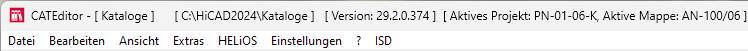 Das Menü des HiCAD Katalogeditors ist erweitert worden: In der Menüzeile können jetzt unter HELiOS Projekte und Mappen aktiviert werden.