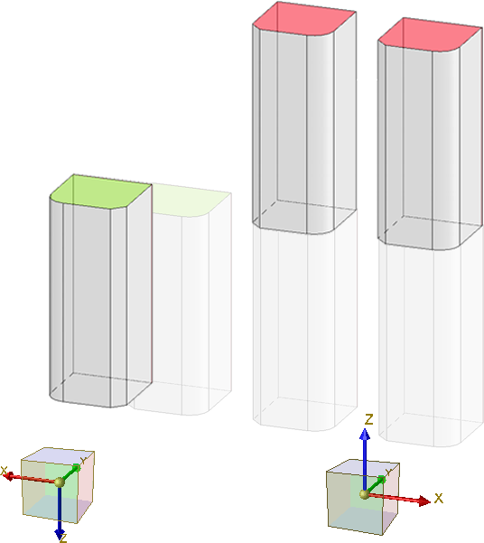 - Beim Spiegeln (ohne Wiederholung) referenzierter Teile werden automatisch auch die referenzierten Gleichteile gespiegelt - sowohl in der aktuellen Konstruktion als auch in allen Konstruktionen. Dabei wird die Ausrichtung des Koordinatensystems der Gleichteile an die des gespiegelten Teils angepasst und damit ggf. verändert. Wollen Sie dies nicht, dann lösen Sie ggf. vor dem Spiegeln die Referenzierung auf.