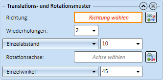 Mit dieser Funktion lässt sich das aktive Teil oder die aktive Teileliste im Muster durch Verschieben und Drehen kopieren.