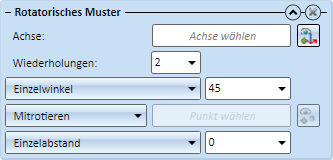 Mit dieser Funktion lässt sich das aktive Teil oder die aktive Teileliste im Muster rotatorisch, d. h. durch Drehen um eine Achse, wiederholen.