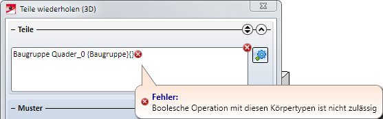 - Das Feature Teilewiederholung wird immer der übergeordneten Baugruppe bzw. beim Vereinigen der Zusammenfassung zugeordnet.