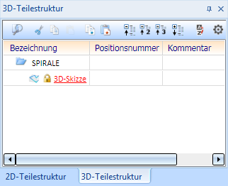 Nach der Übernahme einer Spirale bleibt das Dialogfenster geöffnet, so dass Sie direkt weitere Spiralen erzeugen können. Diese werden der aktiven 3D-Skizze zugeordnet,