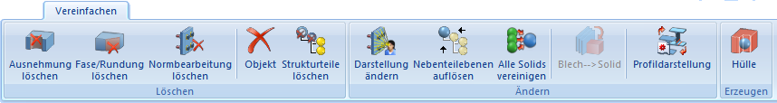 Auf dieser Registerkarte sind Funktionen zusammengefasst, mit denen sich komplexe CAD-Modelle vor der Weitergabe an Dritte vereinfachen lassen. Dies ist beispielsweise sinnvoll bei sehr großen Layouts, deren Bearbeitung zu langsam wird oder bei der Weitergabe an Partner oder Kunden, um diesen nur die Informationen zur Verfügung zu stellen, die sie wirklich benötigten.