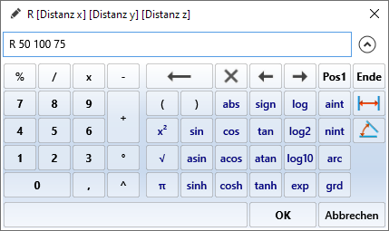 Die eingegebenen Werte beziehen sich auf den letzten Punkt. Ist kein letzter Punkt verfügbar, dann wird die Bestimmung eines Bezugspunktes angefordert.