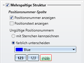 In den Einstellungen des ICN können Sie festlegen, ob Sie nur die Positionsnummer, nur den Positionstext oder beides anzeigen möchten. Ungültige Positionstexte werden - wie ungültige Positionsnummern - durchgestrichen dargestellt.