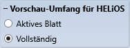 unter Vorschau-Umfang für HELiOS die Option Vollständig gewählt, dann lassen sich in HELiOS auch alle Blätter der Konstruktion darstellen. Je nach Konstruktion kann der Speichervorgang dadurch zeitaufwendiger werden.