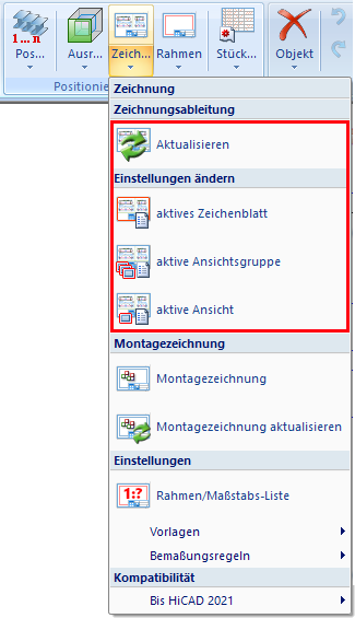 sowie die Funktionen unter Zeichnung > Einstellungen ändern.