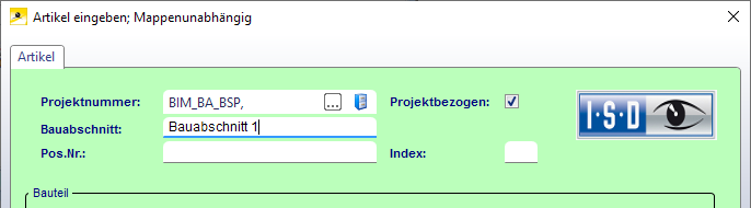 Im Artikelstamm wählen wir als Bauabschnittsnamen Bauabschnitt 1.