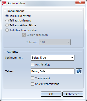 Nach dem Aufruf der Funktion wird das Dialogfenster zum Bauteileinbau angezeigt.