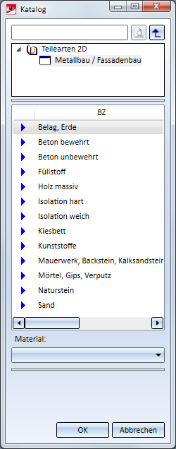 Andockfenster Bauwesen-Funktionen > Bauwesen allgemein > Detail- und Schnittplanung > Teil mit Werkstoff
