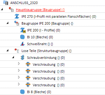 - Platten, Vouten- und Flanschbleche werden mit dem anzuschließenden Profil zu einer Baugruppe zusammengefasst, alle anderen Komponenten mit dem Profil, an das angeschlossen wird.