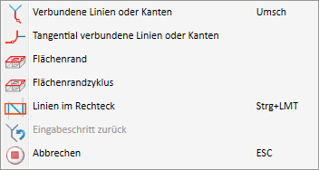 Bei den mit * gekennzeichneten Funktionen gilt dagegen: Werden Linien/Kanten identifiziert, die bereits ausgewählt waren bzw. liegen im gewählten Rechteck bereits gewählte Linien, dann werden diese nicht aus der Auswahl entfernt.