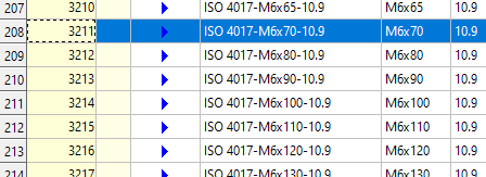- Speichern Sie die Tabelle. Der Datensatz wird dann entsprechend einsortiert. Beim nächsten Start von HiCAD steht Ihnen dort die entsprechende Sechskantschraube zur Verfügung.