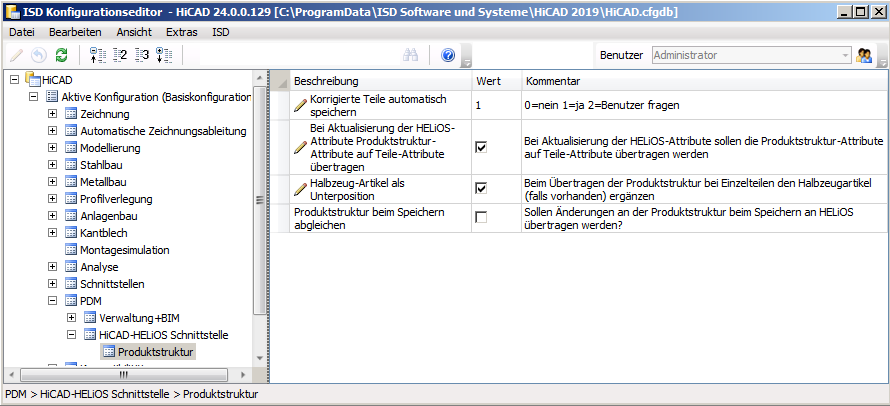 Eingestellt wird dies im Konfigurationsmanagement (ISDConfigEditor), unter Aktive Konfiguration (Basiskonfiguration) > PDM > HiCAD-HELiOS Schnittstelle > Produktstruktur mit Setzen eines Hakens neben Halbzeug-Artikel als Unterposition.
