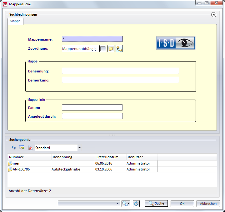 Mappe aktivieren Nach Aktivierung der Funktion wird das Dialogfenster Mappensuche angezeigt.