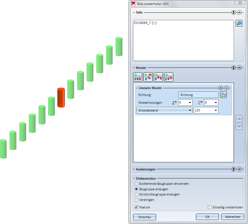 Beispiel: Teil wiederholen, Kombination parametrischer Muster