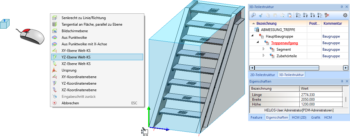 Die Abbildung zeigt eine Baugruppe (Treppenaufgang) mit automatischer Berechnung der Abmessungen.