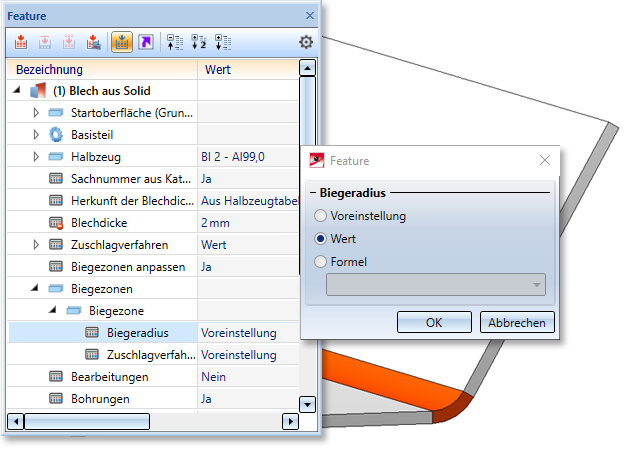Die Blechdicke wird aus dem Solid übernommen. |