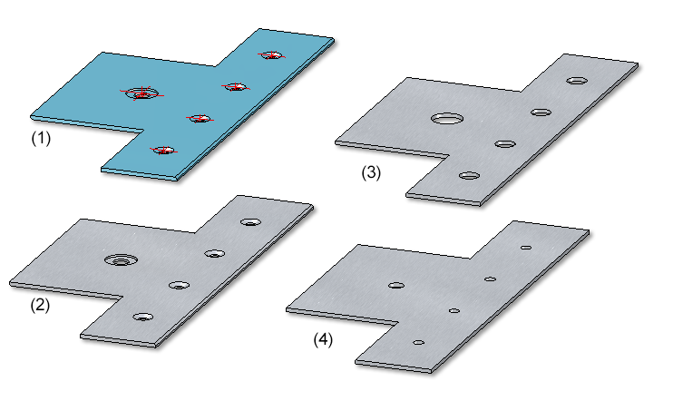 (4) Blechteil, Startoberfläche Unterseite, Bearbeitungen übernehmen und Bohrungen übernehmen deaktiviert